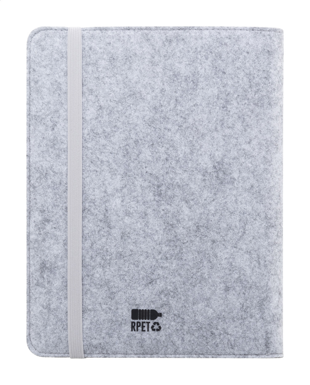 Plstěná sloha A5 na dokumenty z RPET formátu A5 s předními a několika vnitřními kapsami s organizérem. S 20 linkovanými listy poznámkového bloku z recyklovaného papíru.