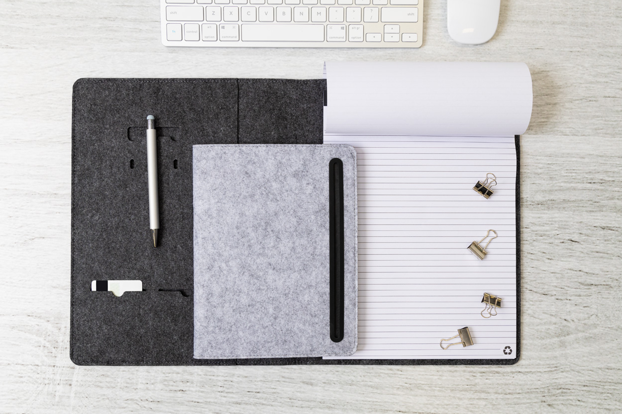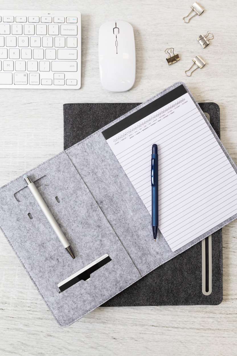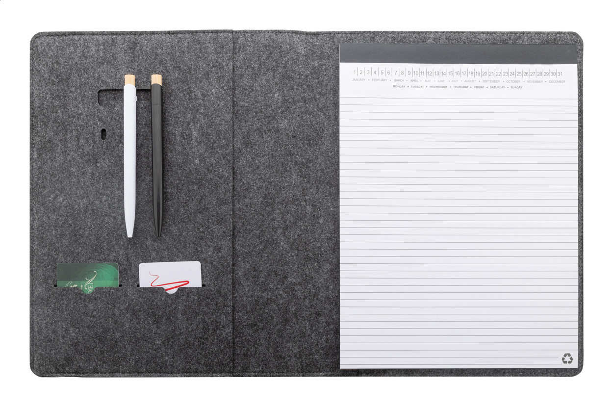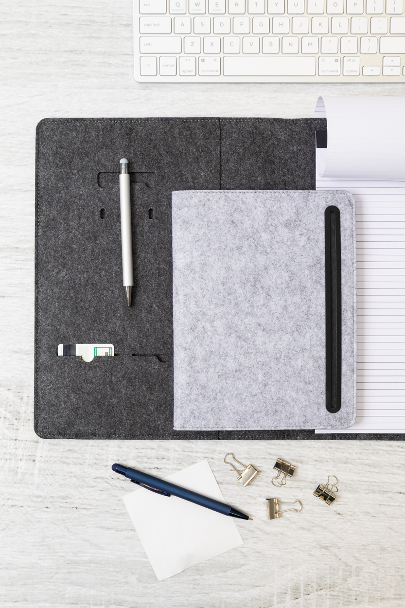 Plstěná sloha A4 na dokumenty z RPET s předními a několika vnitřními kapsami s organizérem. S 20 linkovanými listy poznámkového … Více...